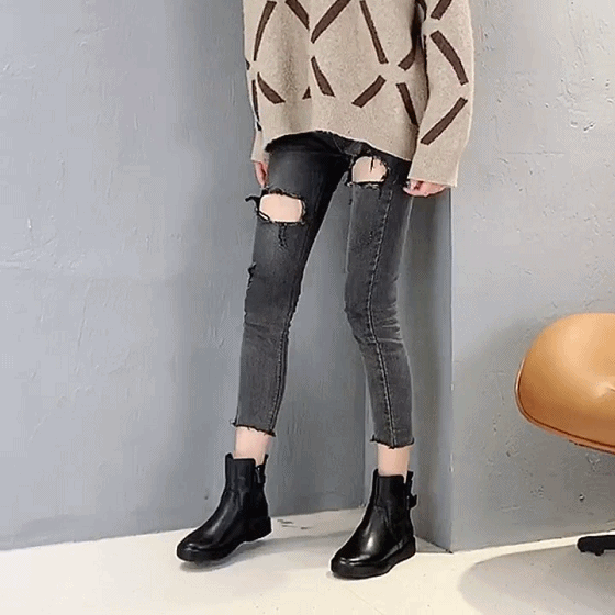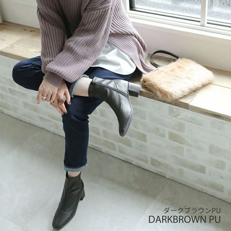 【チャンキーヒールブーツ】本革、通気性抜群、チャンキーヒール、脚長効果、ゴムソールで滑り止め